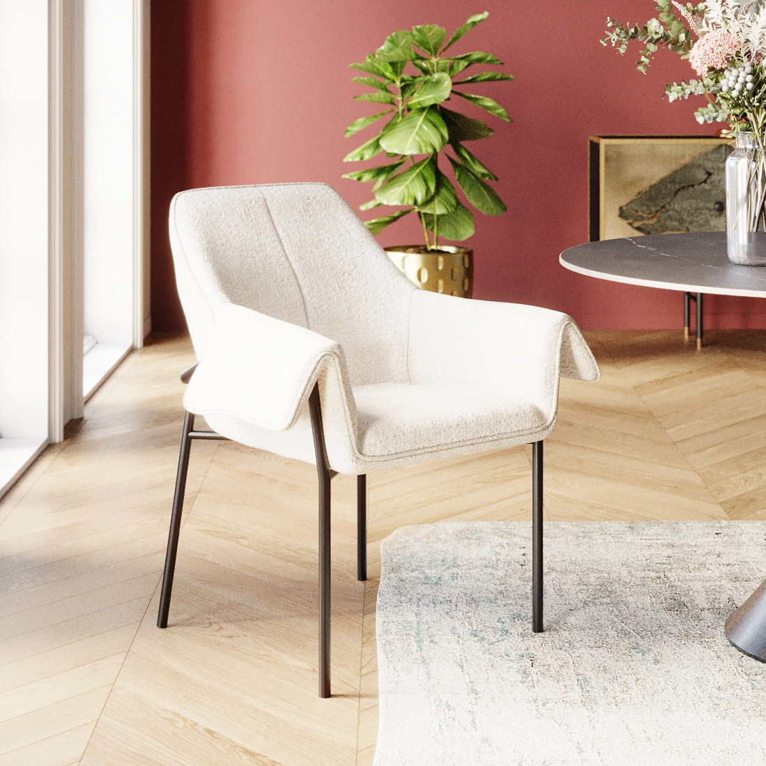 Kare Design Bess Tuoli Käsinojilla, Kermanvärinen