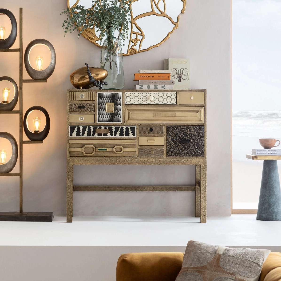 Kare Design Chalet Korkea Lipasto – Kulta 13 Laatikkoa