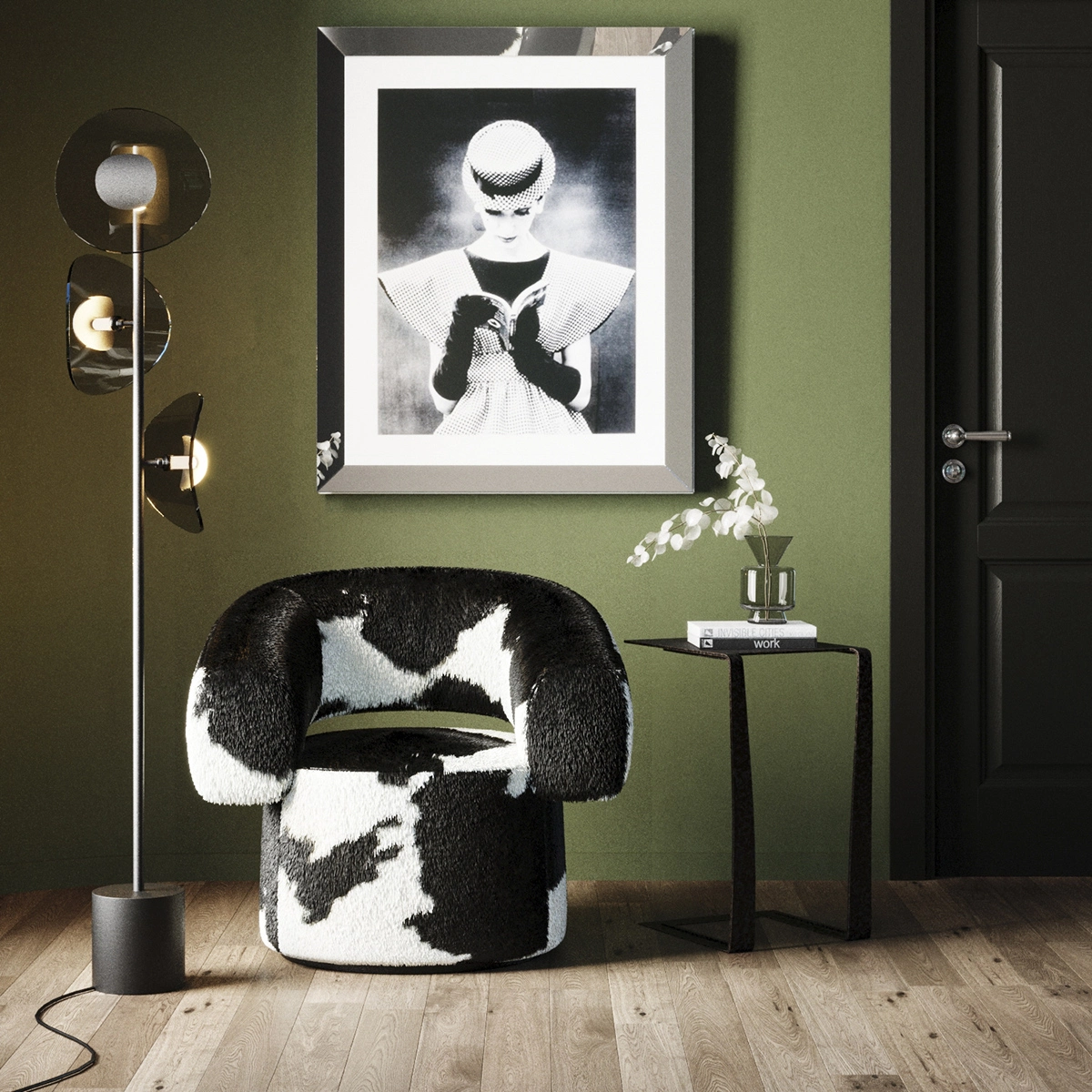 Kare Design Maye Pyörivä Nojatuoli, Lehmännahka, Musta-valkoinen