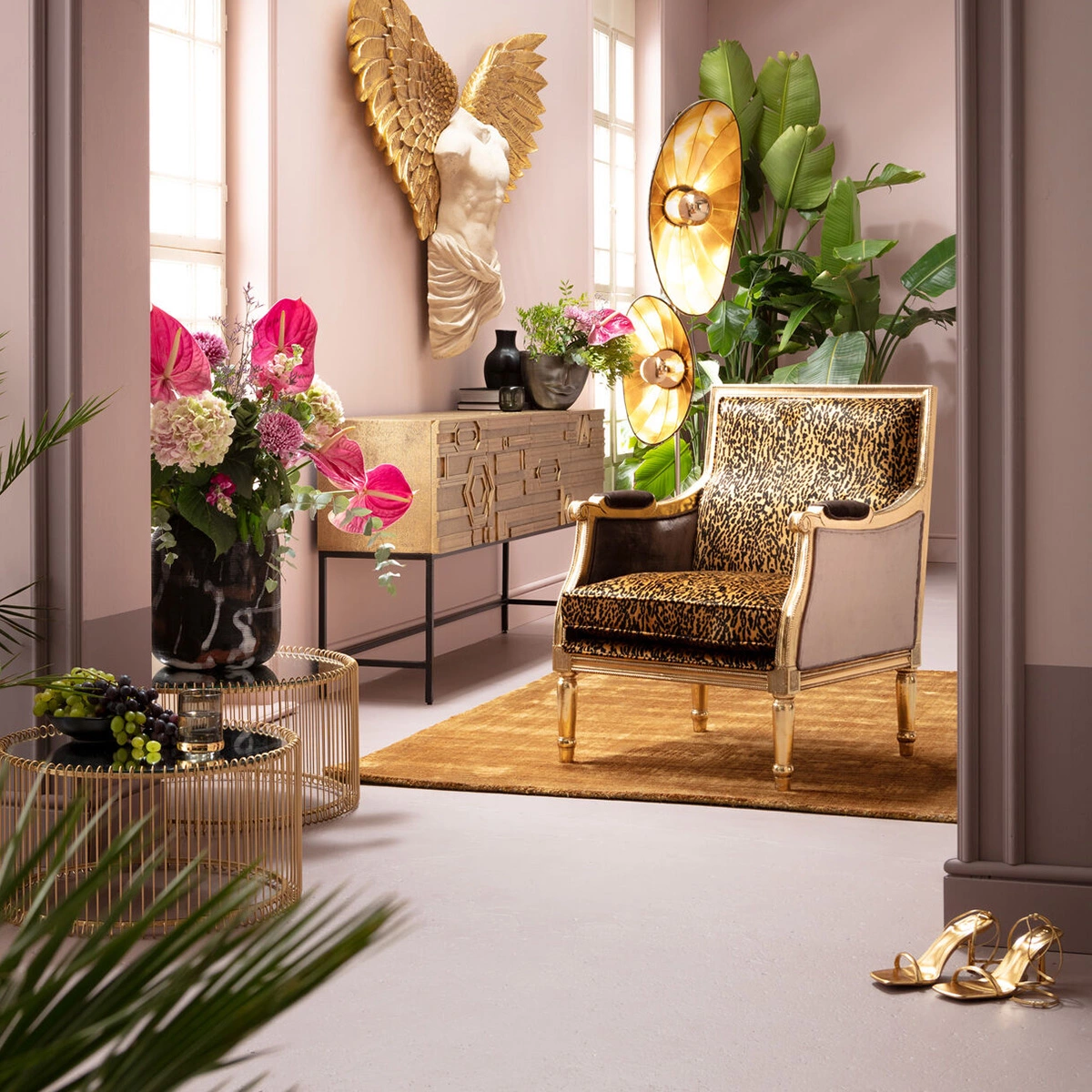 Kare Design Regency Leo Nojatuoli – Leopardikuvio, Kulta